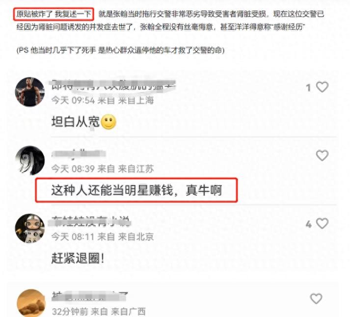 网曝张翰拖行交警已去世,网友发帖却被删,心虚!罪名坐实?