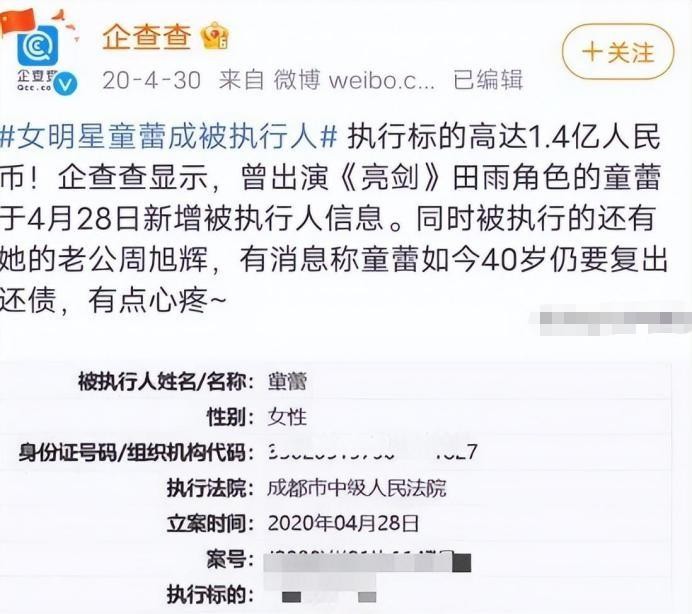 童蕾没有离婚,就这样成为了背负了1.4亿债务的被执行人。