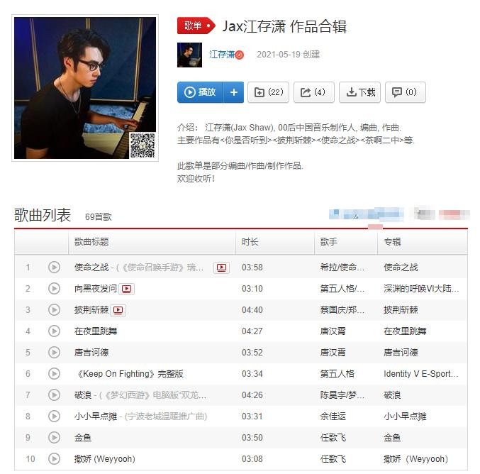 网易云音乐上江存潇的部分作品合辑