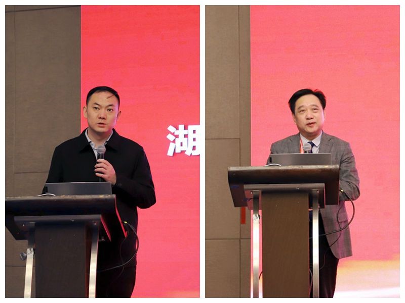 湖北省医院协会副会长、湖北省第三人民医院院长魏伟(左)、湖北省医院协会县市级医院管理分会主任委员徐必生(右)分别致辞