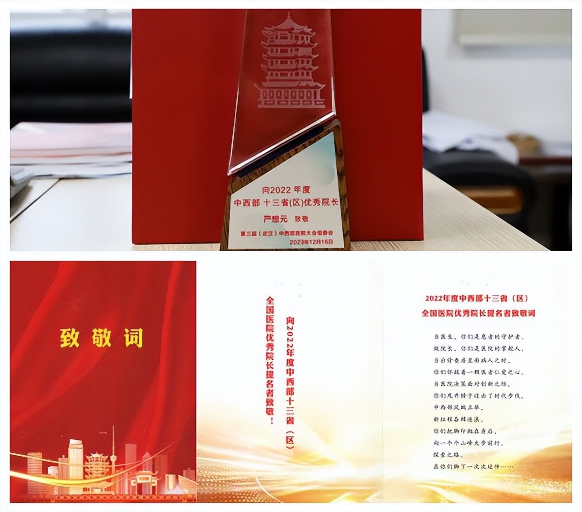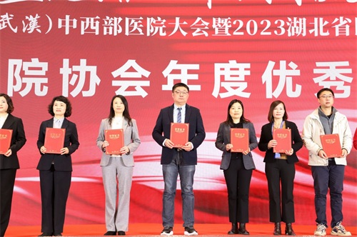 12月16日的主会场开幕式上,对中西部十三省(区)2022年度 “中国医院优秀院长、突出贡献奖”获奖者、提名者,以及2022- 2023年度湖北省医院协会优秀分支机构、优秀医院管理案例和优秀论文进行了现场表彰,湖北省医院协会副会长、华中科技大学同济医学院附属同济医院副院长吕家高和湖北省医院协会副会长兼秘书长胡仁崇共同宣布获奖名单并为获奖者(单位)颁奖。天门市第一人民医院党委书记严想元获2022 年度中西部 “中国医院优秀院长”提名,天门市第一人民医院泌尿外科副主任卢童案例《县域医院泌尿系肿瘤医防融合及全程管理项目》获2023 湖北省医院管理创新奖三等奖。