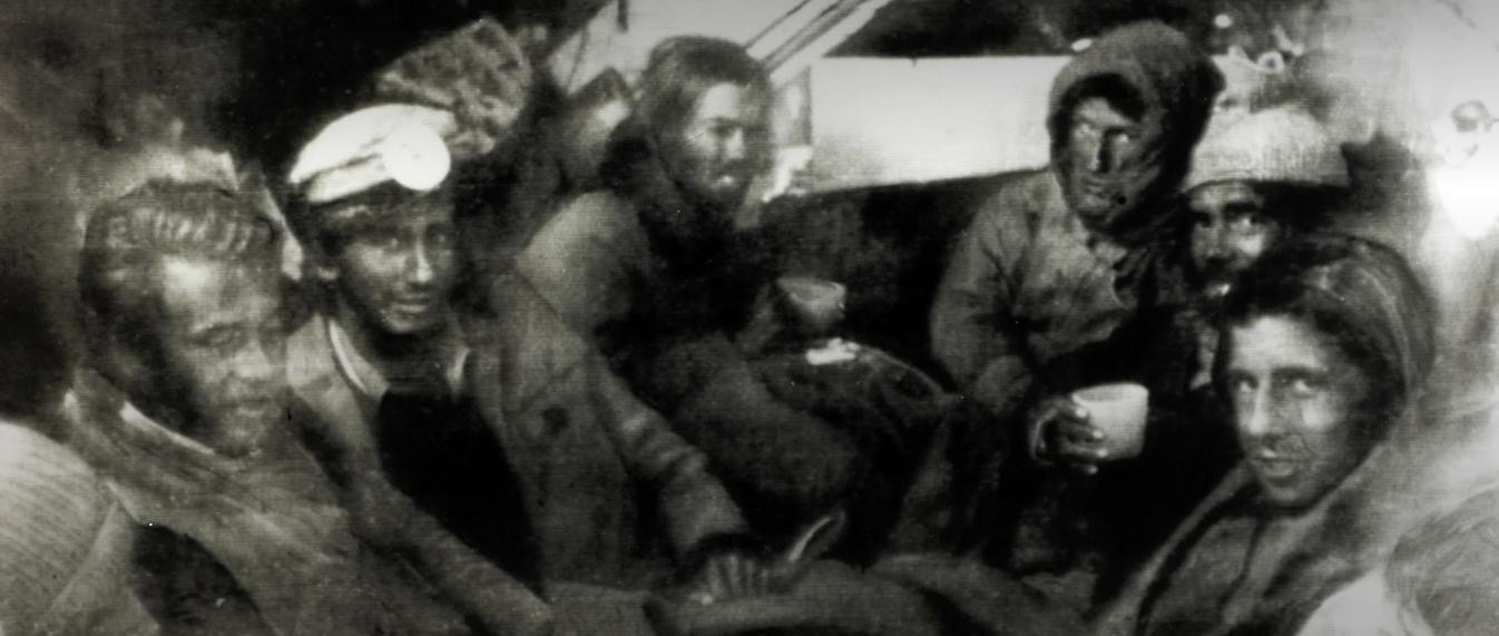 他们绝望地、犹豫不决地从山的另一边下来,开始沿着下面的冰川跌跌撞撞地往前走,试图迫使自己前进,但身体一天比一天虚弱,直到12月18日,他们听到了汹涌的水流。这是一个河口,他们开始沿着河口走。第二天,他们看到了有人居住的迹象:一个生锈的汤罐,一个马蹄铁,牛粪,一群牛,最后,在12月20日晚上,他们看到了河对岸一个骑马的人。
