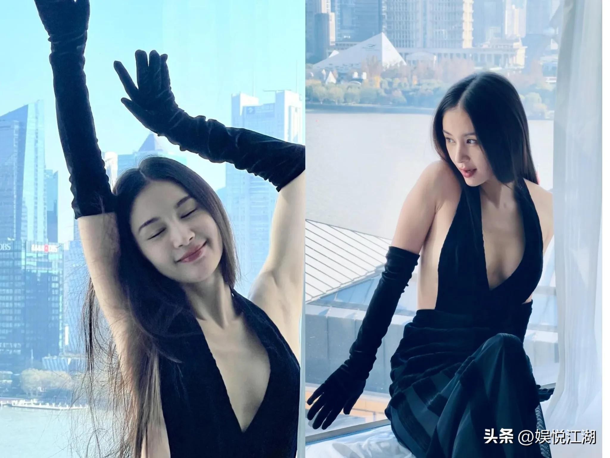 还是那个身材,但是脸蛋变了。坐在窗台上,一头长发,深V露背紧身长裙。