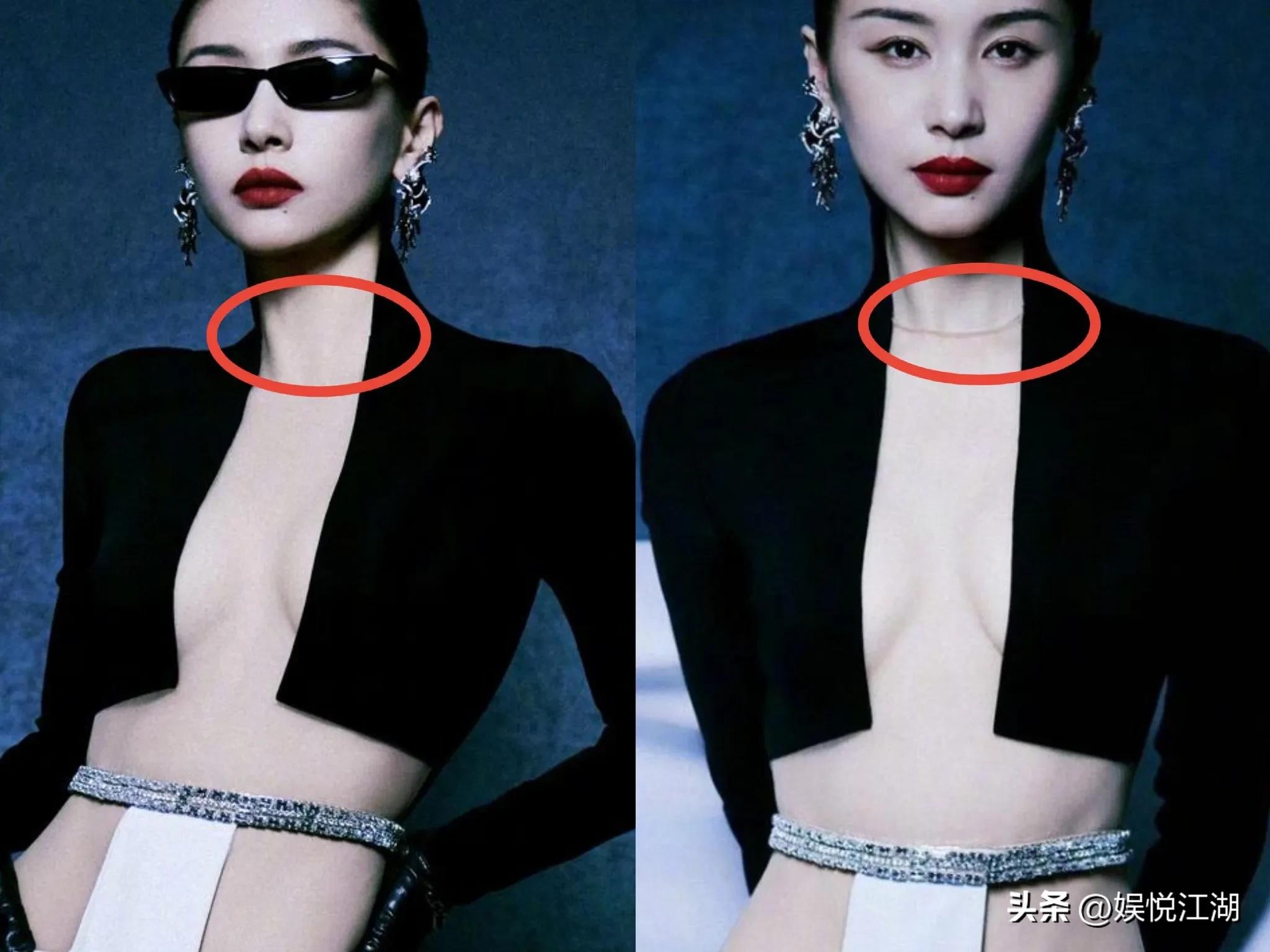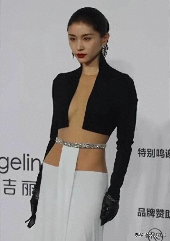 她胸口那块“真空”地带,被肉色纱料裹着,显得有点“不伦不类”。