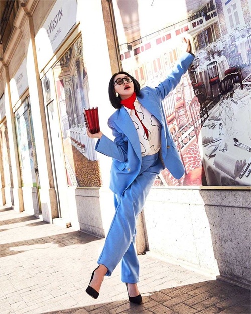 例如红色内搭与蓝色外套的搭配就是一种色彩上的挑战,但同时也是一种时尚的创新。这种搭配方式打破了传统色彩搭配的规则,使整体造型更加鲜明和个性化。