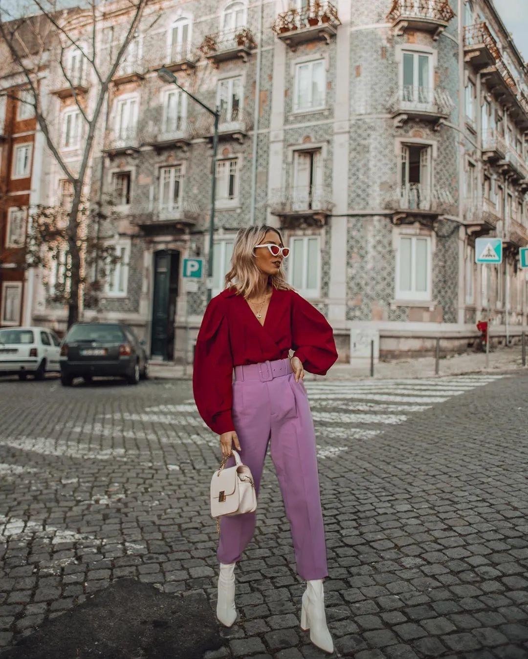 当然这组搭配除了让人感到惊艳外,更带有一种独特的韵味。红色的热情奔放与紫色的深沉内敛,既能够展现出女性的柔美和娇媚,又能彰显出女性的独立和自信。
