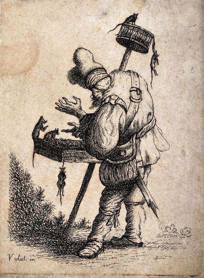 “捕鼠男”是欧洲中世纪到近代普遍存在的职业。当时,人们把家庭生活中产生的垃圾和排泄物从窗户扔到路上或庭院中,这样产生的后果就是容易招致老鼠,以垃圾为食物的老鼠住在人类的生活圈里,老鼠身上的跳蚤会传播鼠疫。驱除这些老鼠就是“捕鼠男”的工作。