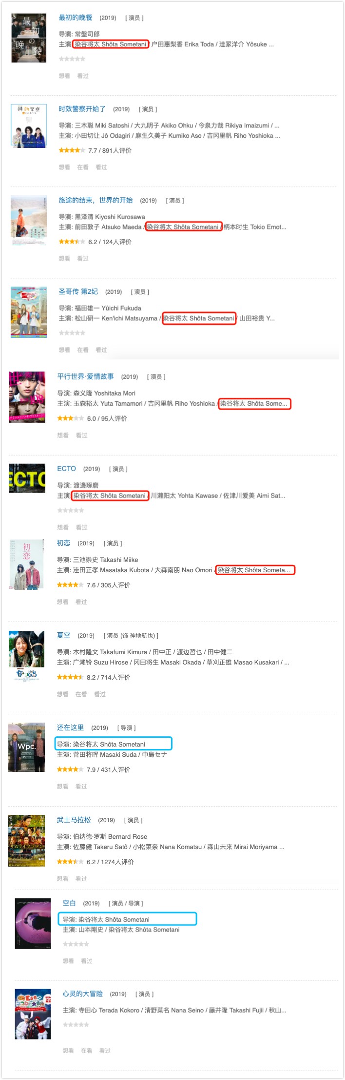 而2019年,他为大银幕贡献了12部作品(平均1个月1部作品?!),甚至,其中有两部电影,由染谷将太担任导演。“不怕优秀的人,就怕优秀的人比你还努力。”如此高(超)产(神)的节奏,简直就是演艺圈劳模。