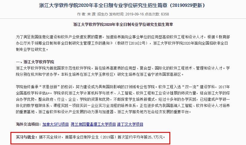 另一方面,浙江大学软件学院的招生简章炸了,非全日制平均年薪25.7万!