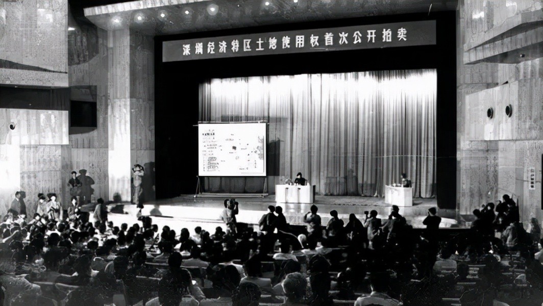 1987年12月1日下午四点,深圳会堂座无虚席,人声鼎沸。企业、银行、政府代表济济一堂,在中外媒体的见证下,新中国成立以来首次国有土地使用权公开拍卖如期举行。