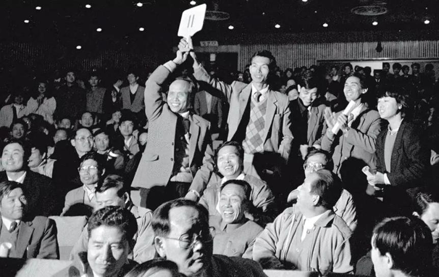 △1987年12月1日,深圳经济特区土地使用权首次公开拍卖现场