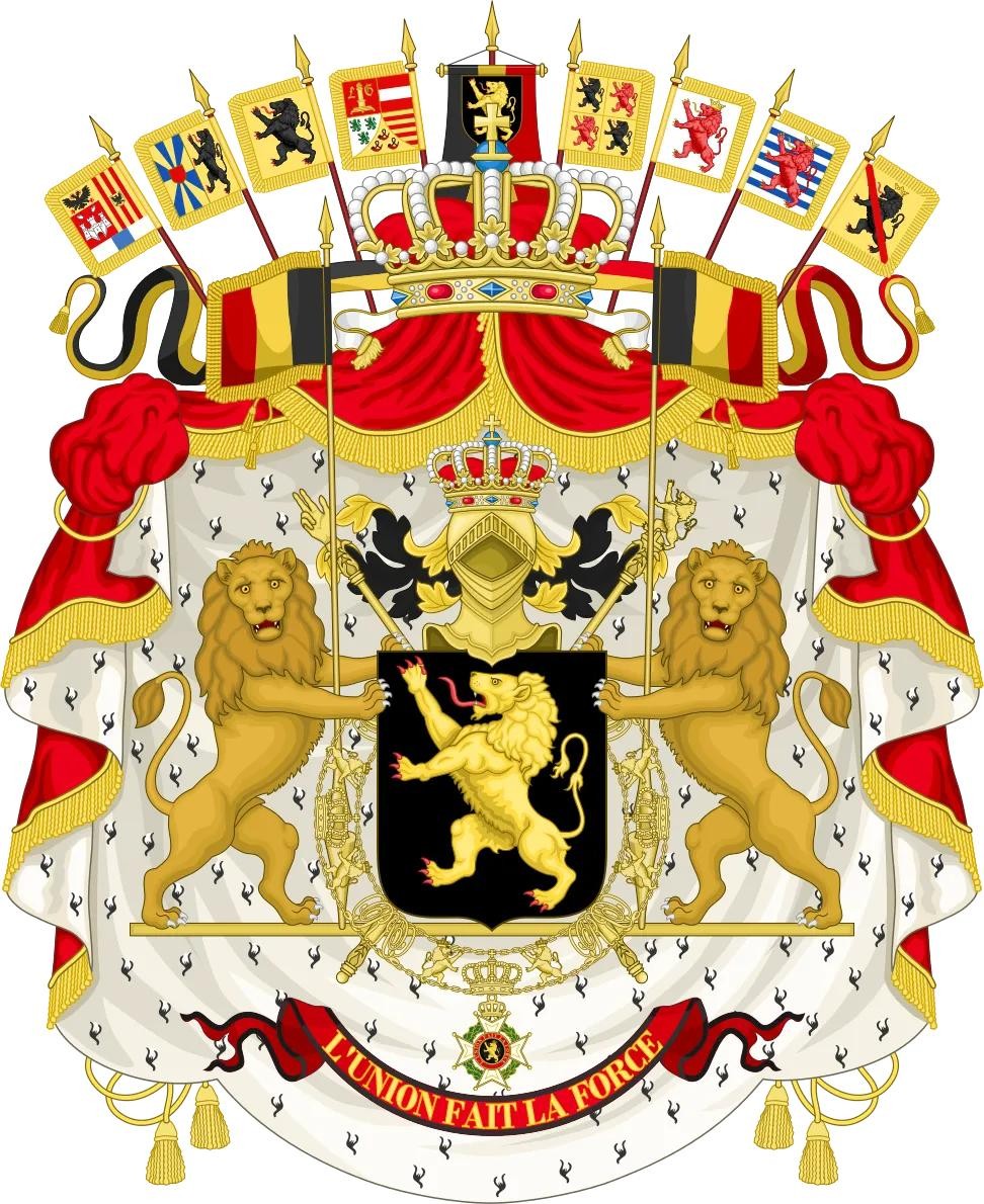 围绕着盾牌的是悬挂比利时最高荣誉利奥波德勋章的金链。