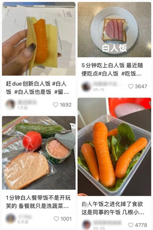 最近,一种名为“白人饭”的午饭在社交媒体上迅速走红。尽管这种饭只是由胡萝卜、菜叶和芥末酱组成的简单组合,许多年轻人纷纷效仿,将其作为工作午餐。然而,这样的饭食引发了一些争议。有人质疑这种饭是否能够提供足够的能量和营养,还有人认为这是社会压力和职场辛苦的象征。