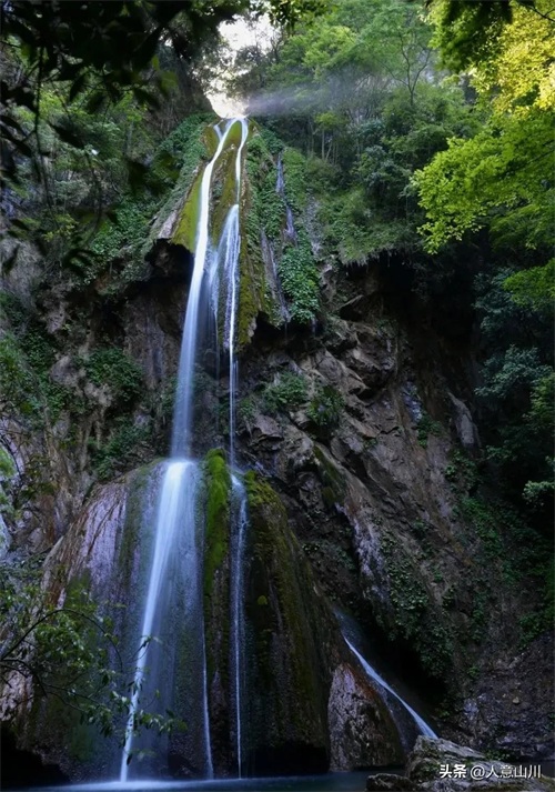 马尾瀑顺流而下,在下方形成了层层叠叠的缓流瀑布,