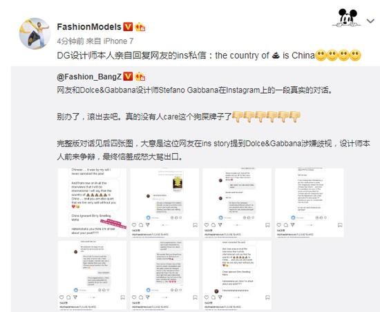 而在这之后,DG的设计师Stefano Gabbana在Instagram和网友的对话曝光,直接发表辱华言论。