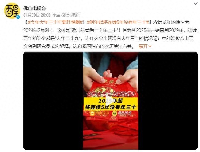 因为从2025年开始直到2029年,连续五年的除夕都是“大年二十九”,为什么会出现没有大年三十的情况呢?
