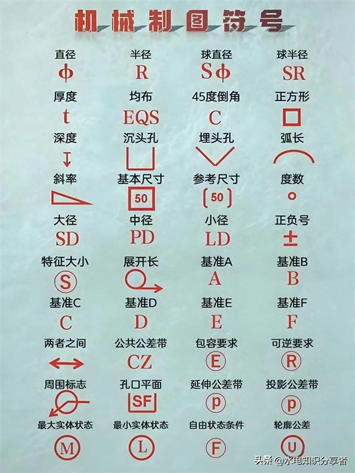 整理的机械制图符号!图纸必备技能之一!建议收藏备用起来!