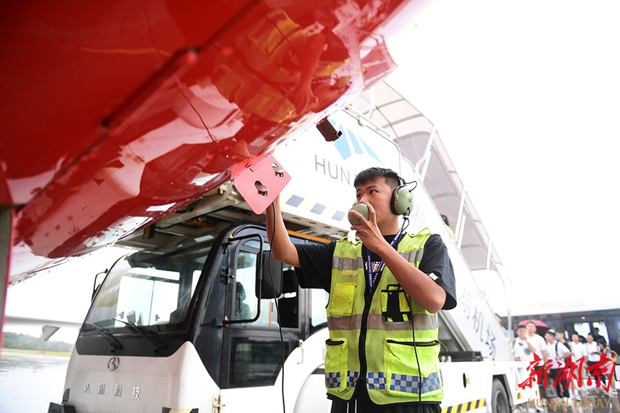 8月9日,机场工作人员组织旅客有序登机。今年,郴州机场建立科学服务管理体系,优化工作流程,提高服务质量和效能,不断加大一线生产岗位的消防、安全生产等检查频次,定期组织开展设施设备专项排故检查,确保岗位安全、消防安全、服务质量良好发展。自通航以来,郴州机场飞机起降6391架次,旅客吞吐量达46.34万人次。 曹高林 摄