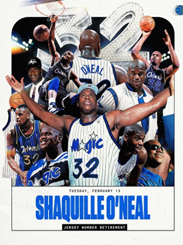 魔术官方写道:“为了庆祝本赛季建队35周年,我们将正式退役32号球衣,致敬沙奎尔-奥尼尔,并且会在2月13日举办退役仪式。”