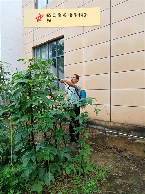 周末回到离县城二十多公里的老家,院子里的蔬菜长势很好,豆角苗结了许多长长的豆角,没喷过农药的豆角上长满了蚜虫。老公自制生物杀虫制剂(生石灰1:水30,再添加50克食盐)喷洒,一周后看防虫对比效果。
