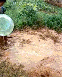 后面的朋友,你这是用了多大的劲啊!盆都陷进去了!