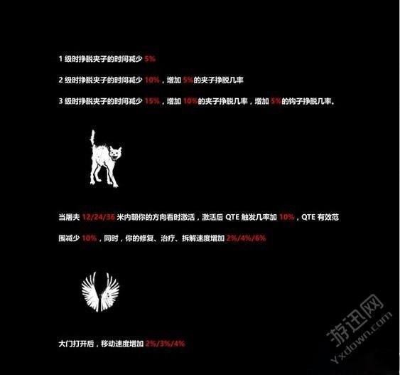 以上就是《黎明杀机》全人物全技能图文翻译了,大家可以试一试组合自己喜欢的技能。