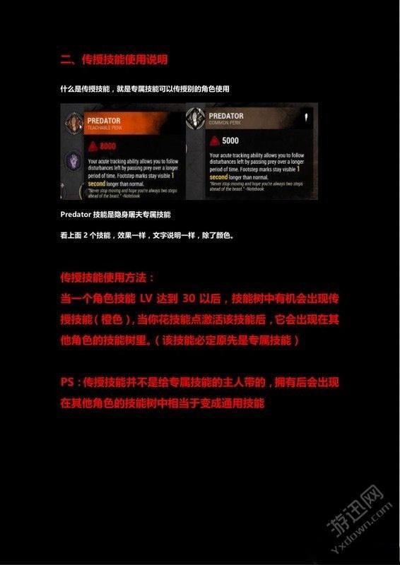 《黎明杀机》是一款很火爆的多人生存恐怖游戏,这款游戏无论是幸存者还是屠夫在游戏中都能提升等级解锁技能,那么这些技能怎么划分?每个角色的技能又是什么呢?下面小编带来“Pigpiggo”制作的翻译图表,版权归原作者所有,这里表示感谢。