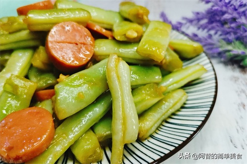 一道非常简单的白豆角炒火腿肠,做好了!没有技术难度,味道还不错,特别值得一试!