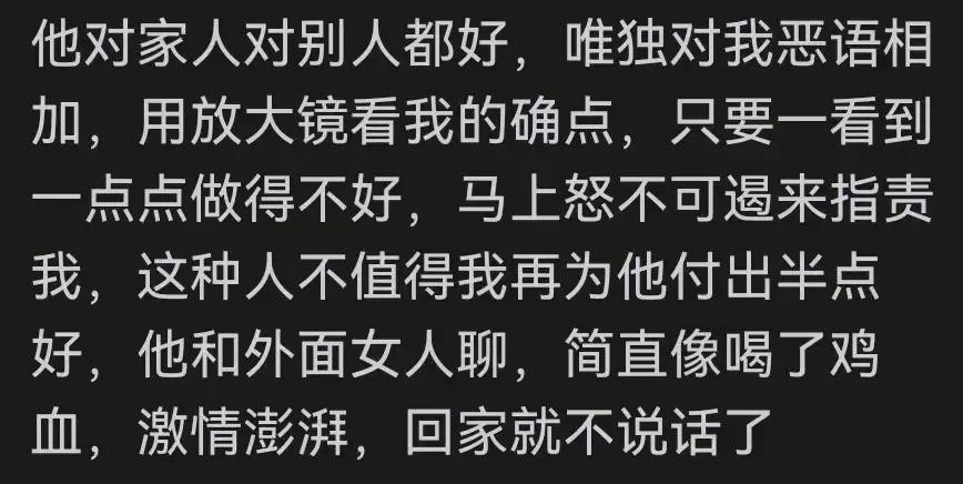 对外面的所有人甚至流浪狗都是客客气气的,一回到家说话永远是恶声恶气,没有感情了就是陌路