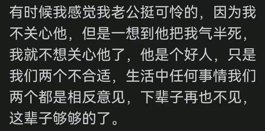 以前是跟他说话不理你气个半死,要不就是鸡同鸭讲,现在他跟我说话我懒得理,爱回家不回家就当空气,养好孩子照顾好自己就行,挺好奇结婚到底有没有过得幸福的那种,默契恩爱有加那种