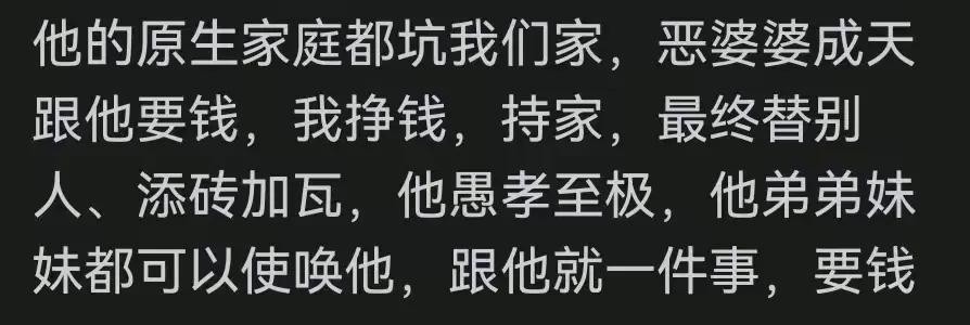 以前刚结婚的时候总是埋怨他眼里没有小家,只要休假就要跟他爸妈哥嫂聚会,带娃去玩肯定带她侄女,经过后来种种事情,最近这几年,我巴不得带所有家人或者朋友一起去,只要不是我俩单独一起就行,单独待一起,特别窒息!