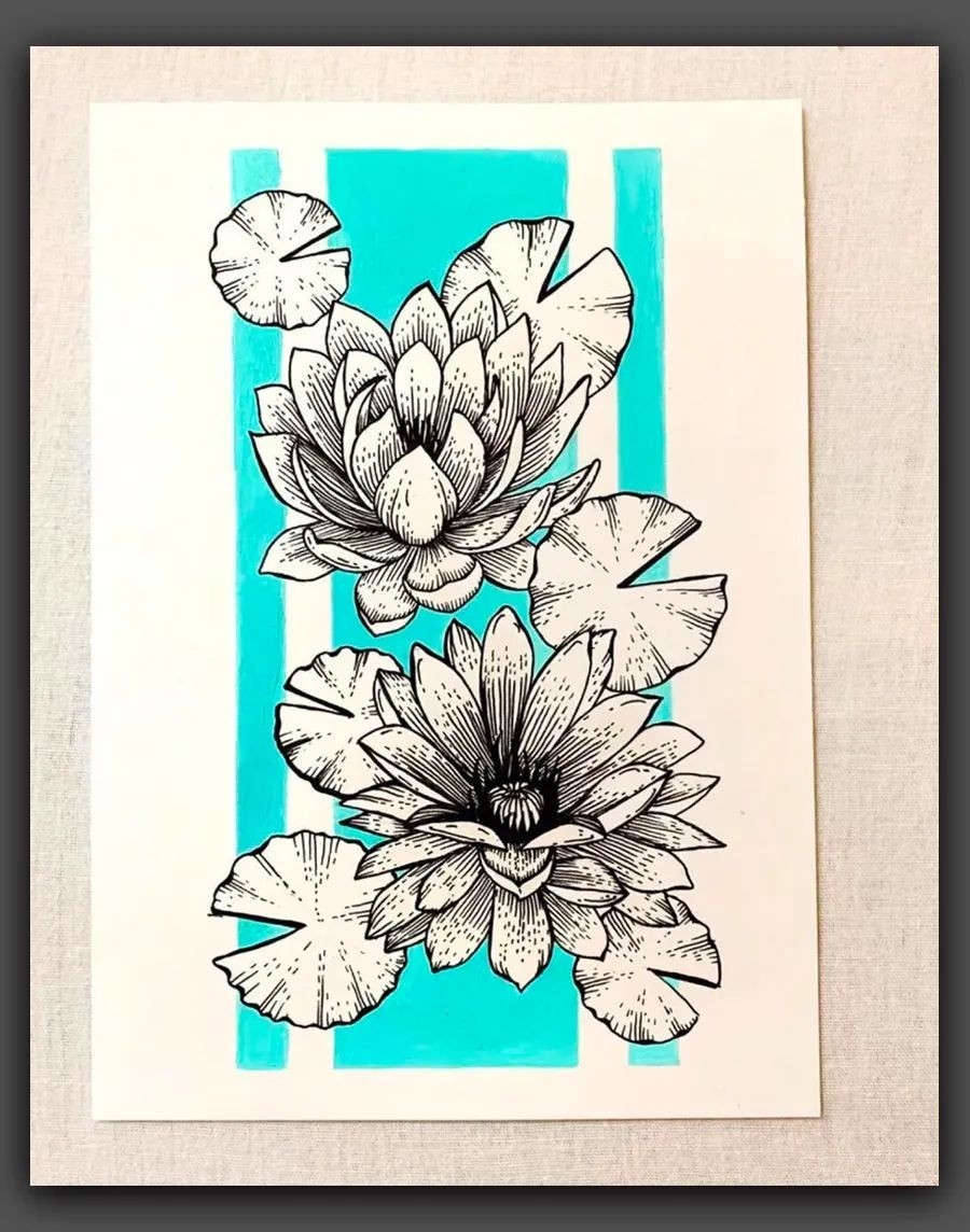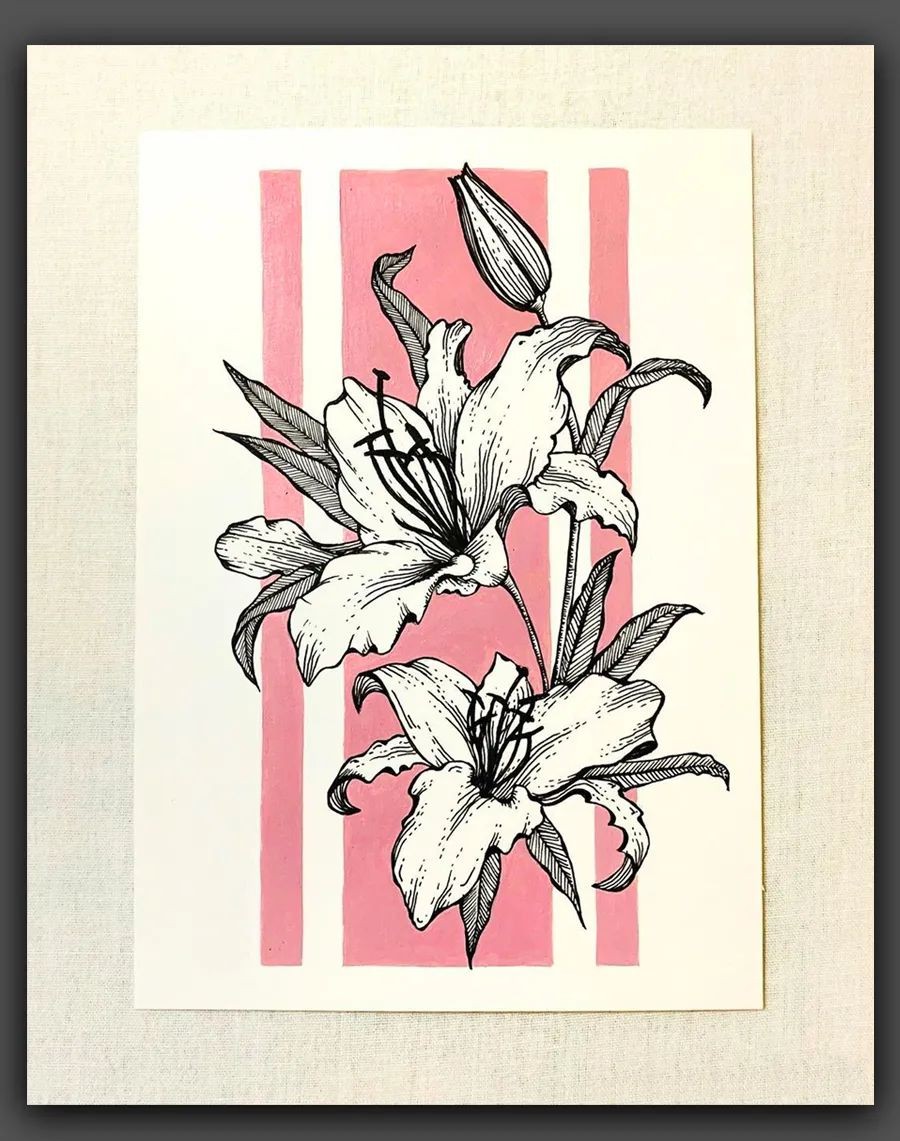 在今天我们欣赏的一系列绘画作品中,绘画者用黑白的单色线条去描绘花朵优美的姿态,百合的优雅、扶桑的大气、睡莲的静谧、鸢尾的妖娆......通过丰富细腻的线条,生动地呈现出花朵的形态与细节之美。