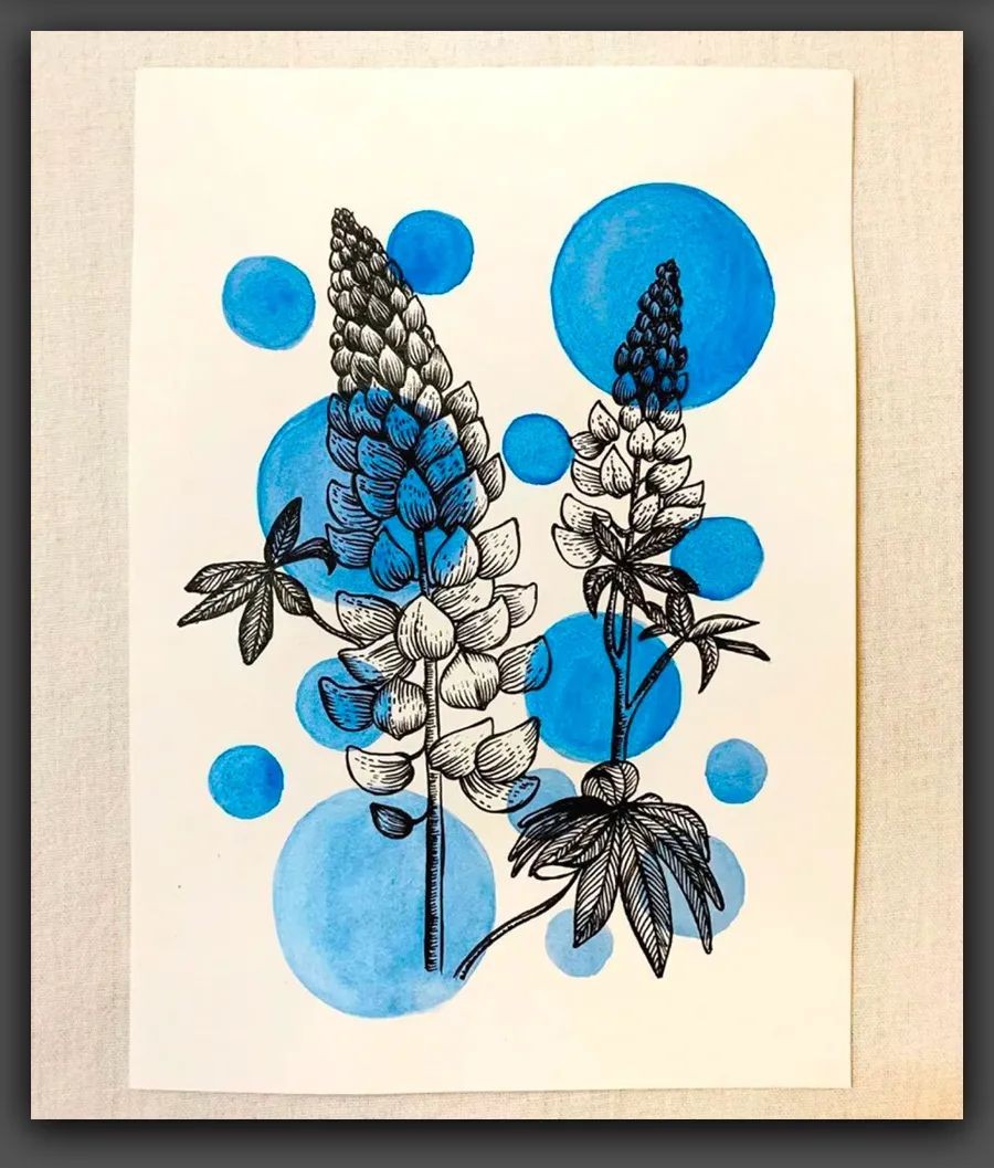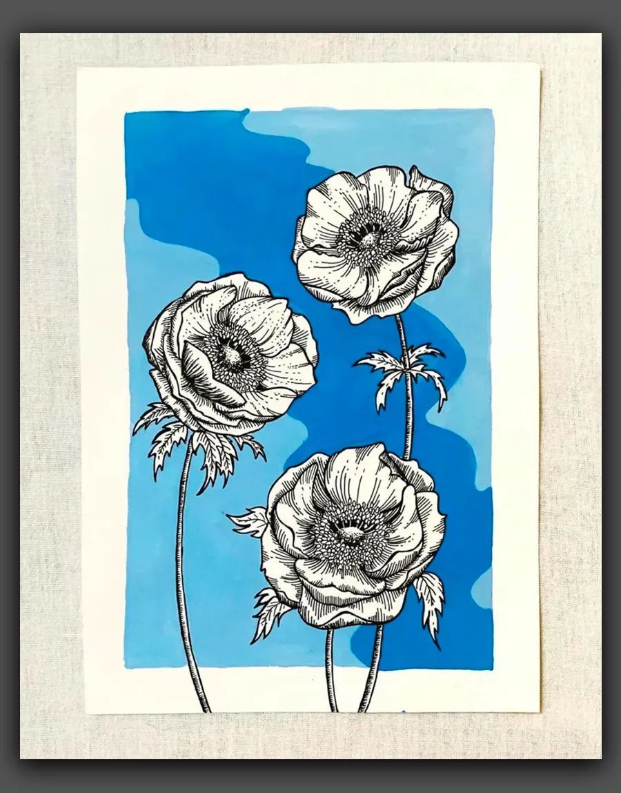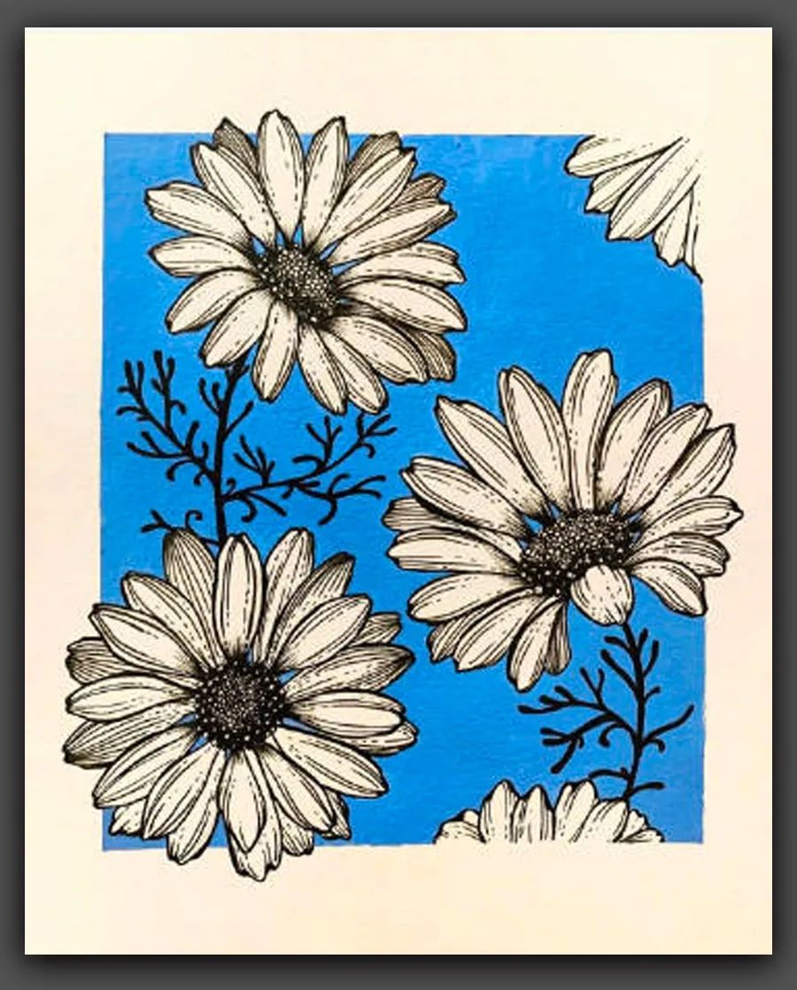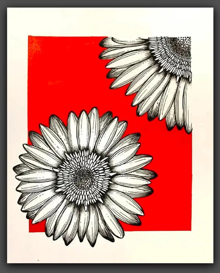 绘画|黑白线条与简洁色块,这组花卉手绘作品太美了