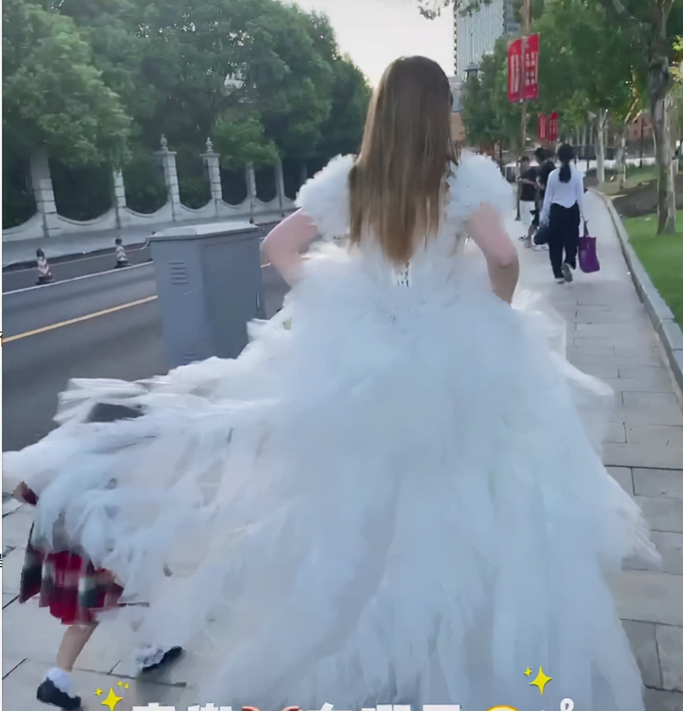 原来是万蒂妮和老公准备要二胎了,想在怀二胎前纪念,从校服到婚纱,俩人没拍过外景,所以这次来过个瘾。万蒂妮还调侃自己拍个婚纱治好了颈椎病,摆出了高难度的后仰姿势。