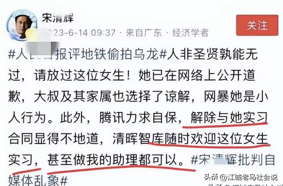这名经济学者宋清辉,先是指责腾讯开除张薇的行为不地道