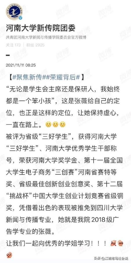 可以看出张薇在河大期间荣誉无数,算是奖励拿到手软,这大概也是她被保研的最重要原因