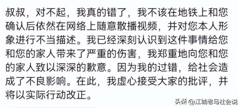 一名女研究生,在地铁里对着一名农民工大叔实施了自己的恶意