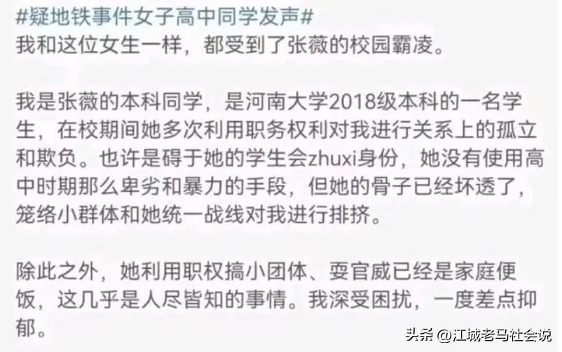 张薇的高中同学,大学同学在近日均站了出来公开曾受到张薇的欺负和霸凌