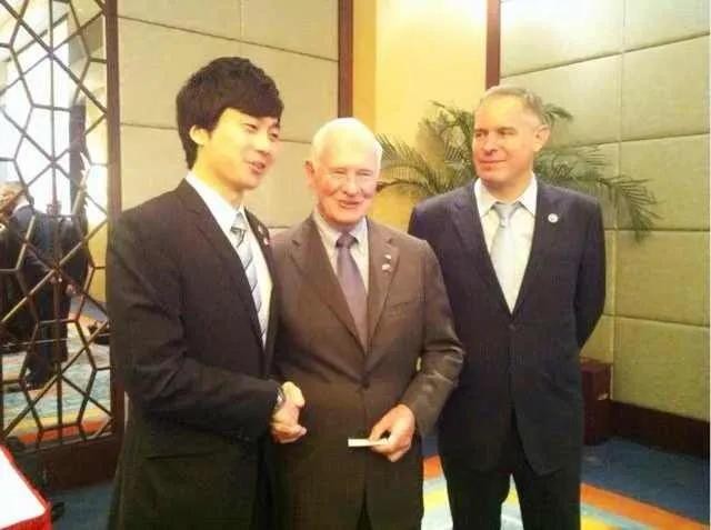 留学期间,谭垠盈积极参加文化交流活动,与时任加拿大总督约翰斯顿(中)握手。