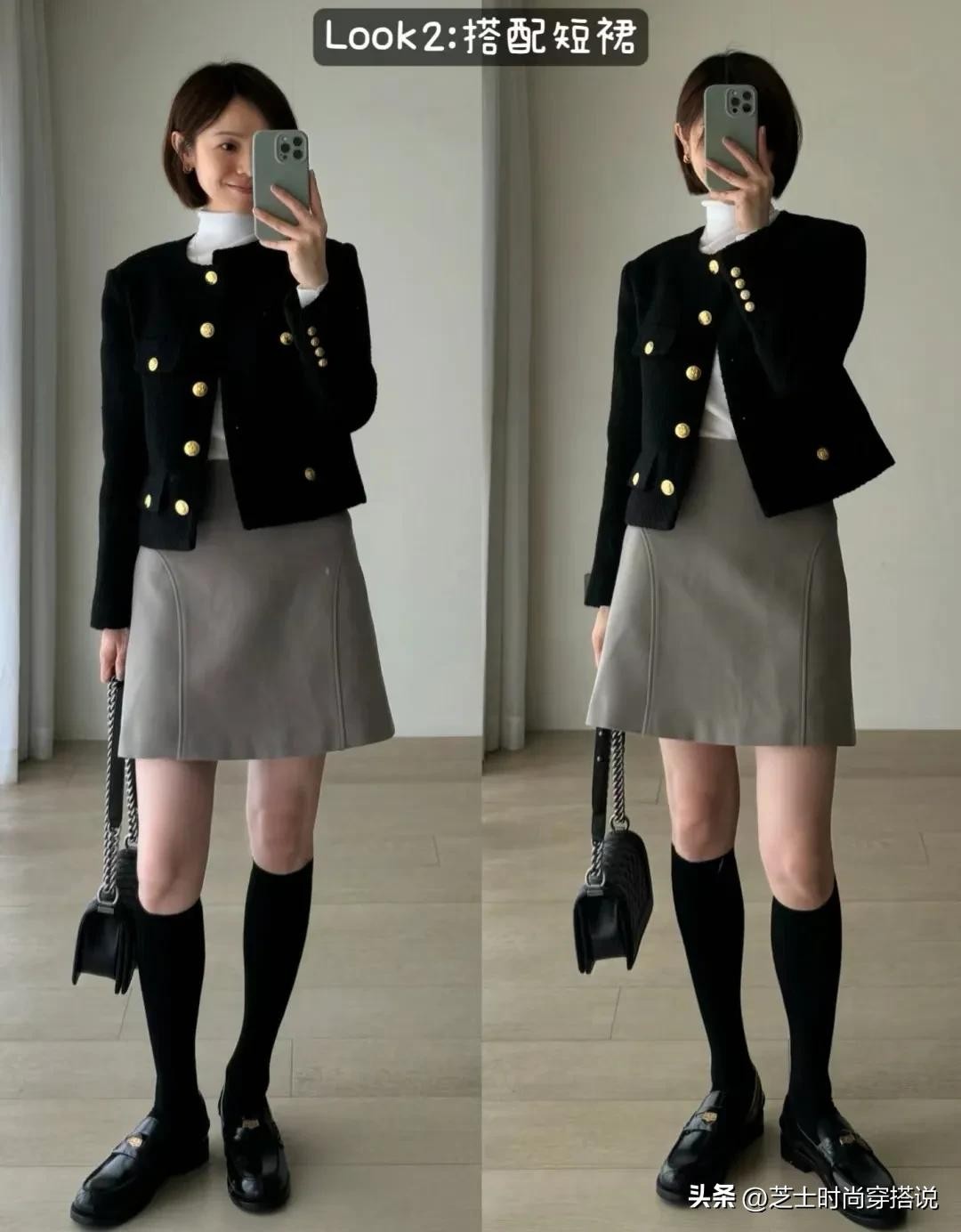 相较于牛仔外套的休闲风格,短款小香风外套则展现了一种完全不同的气质。它以其优雅的线条和精致的制作,无论是搭配牛仔裤还是小短裙,都能穿出精致气质的时尚感。
