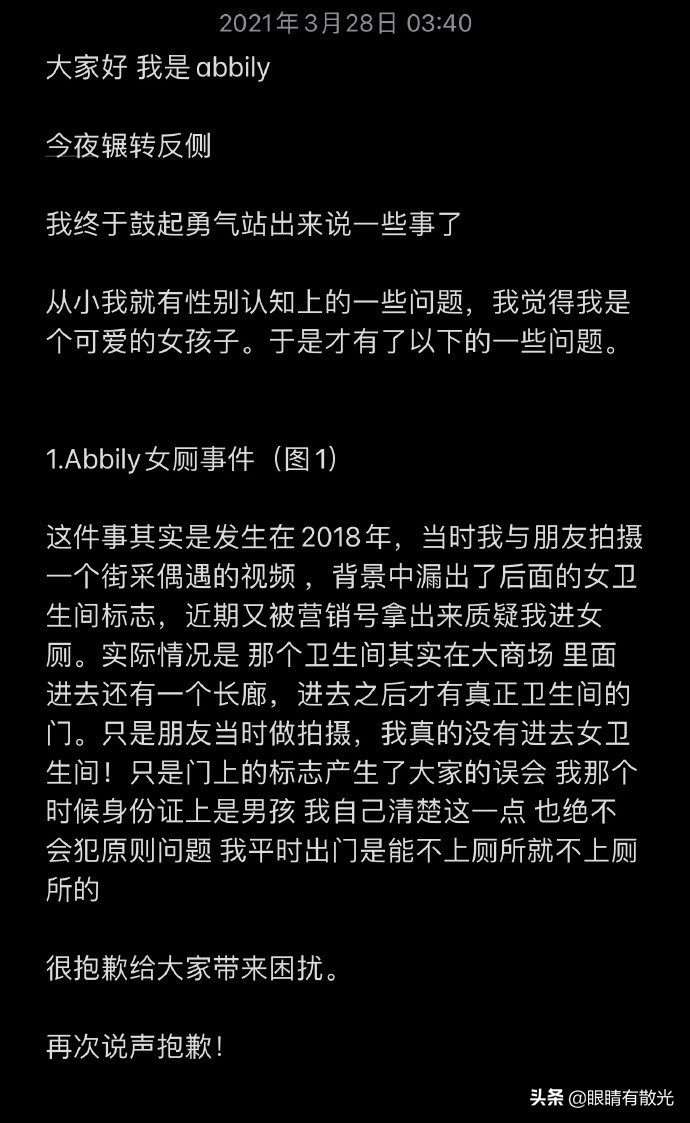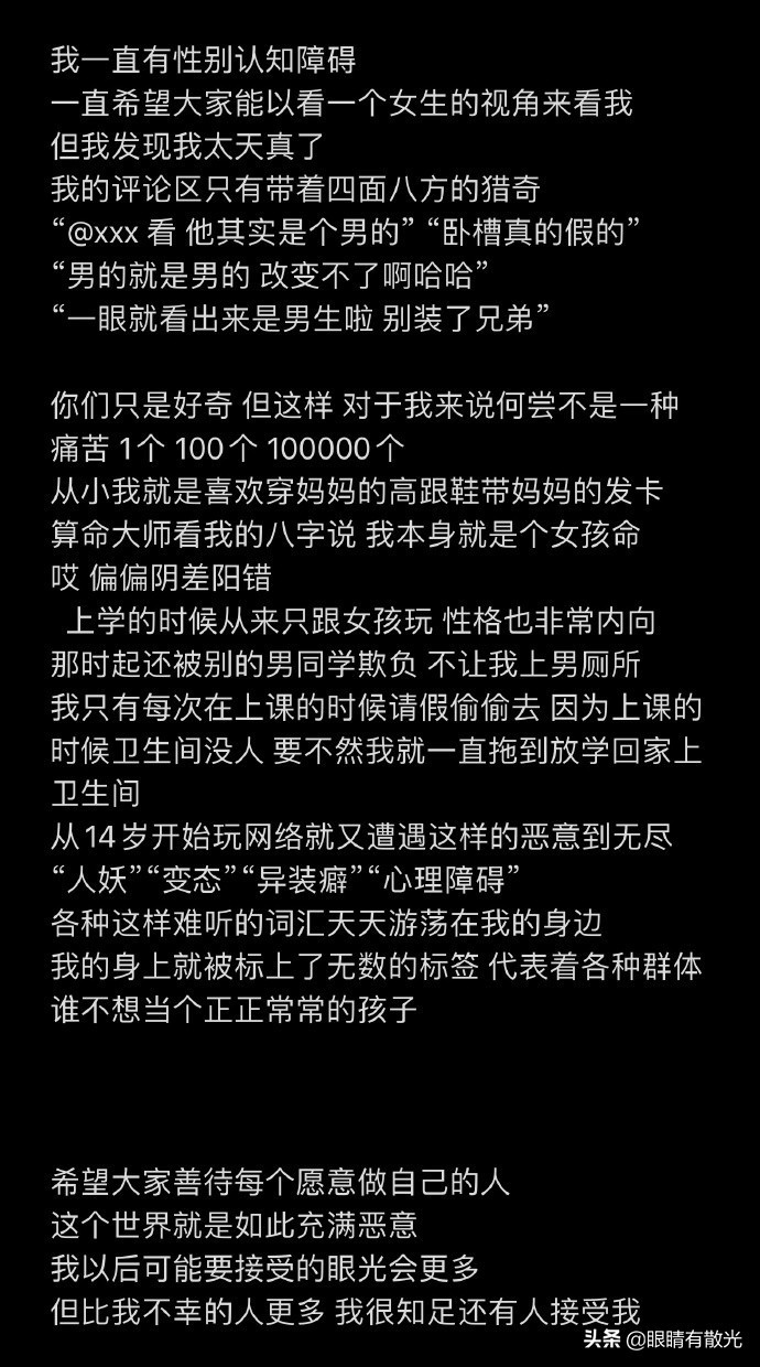 微博百万网红、抖音女装大佬“我叫Abbily”深夜发文变性成功