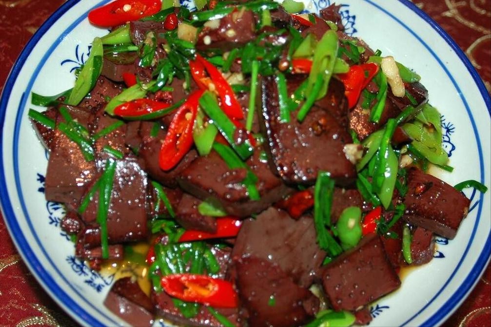 配方:猪血、蒜苗、剁椒酱、姜蒜、盐、料酒、生抽、老抽、蚝油
