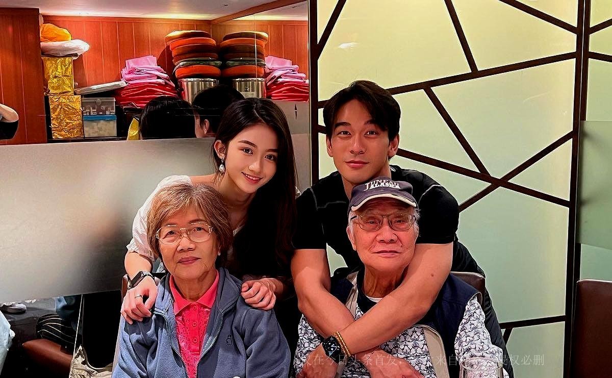 钱小豪钱嘉乐为父母庆生祖孙三代长相相似,汤盈盈穿红衣抢镜