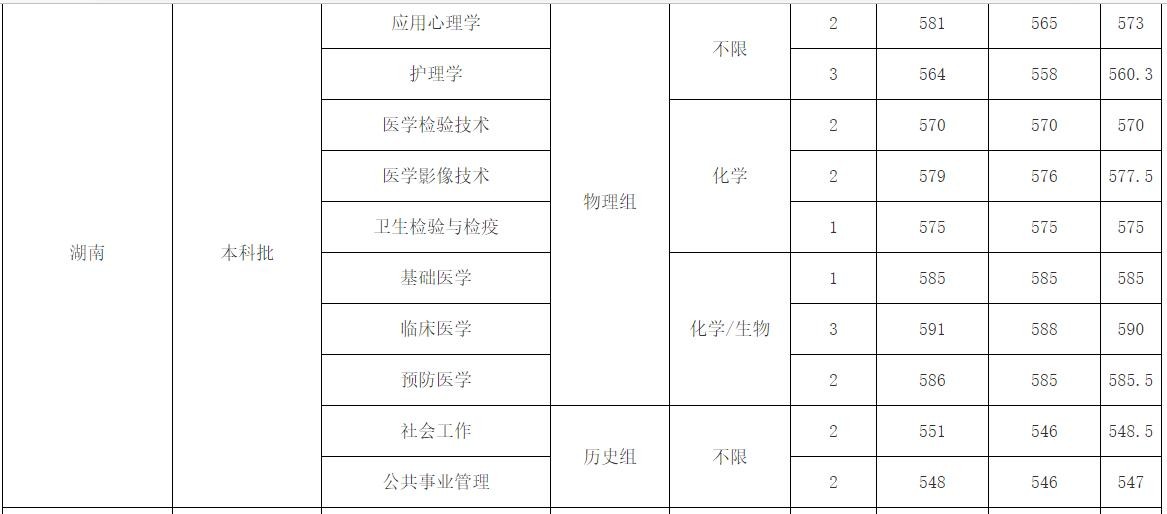 物理类:临床医学(化学/生物)专业的录取分数线最高,录取最低分为588分。护理学(不限)专业的录取分数线最低,录取最低分为558分。