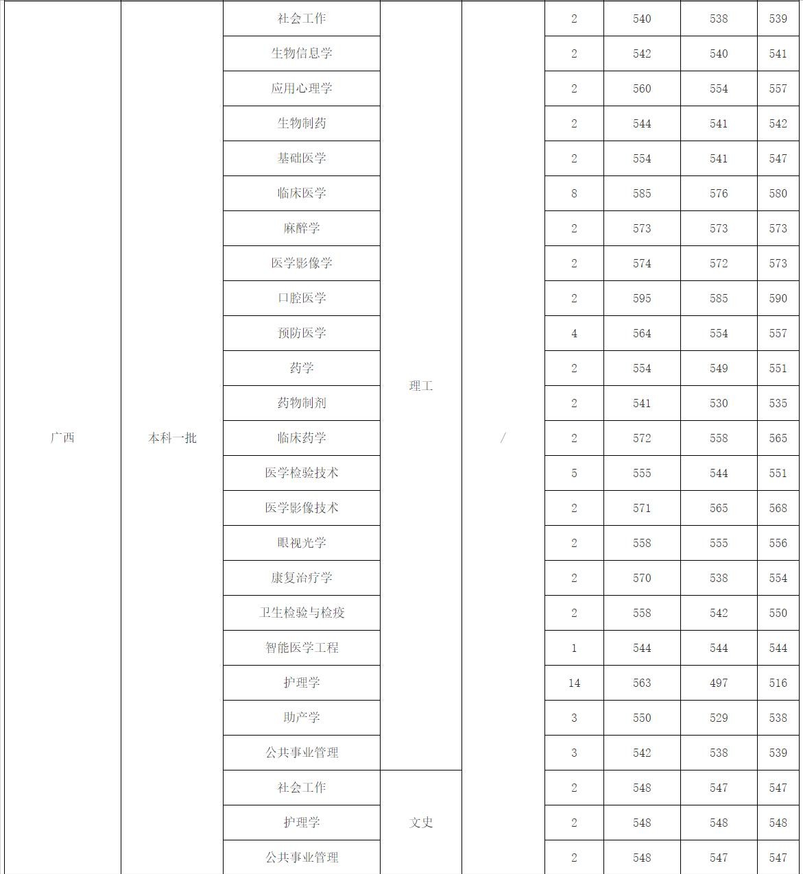 理工类:口腔医学专业的录取分数线最高,录取最低分为561分。护理学专业的录取分数线最低,录取最低分为483分。