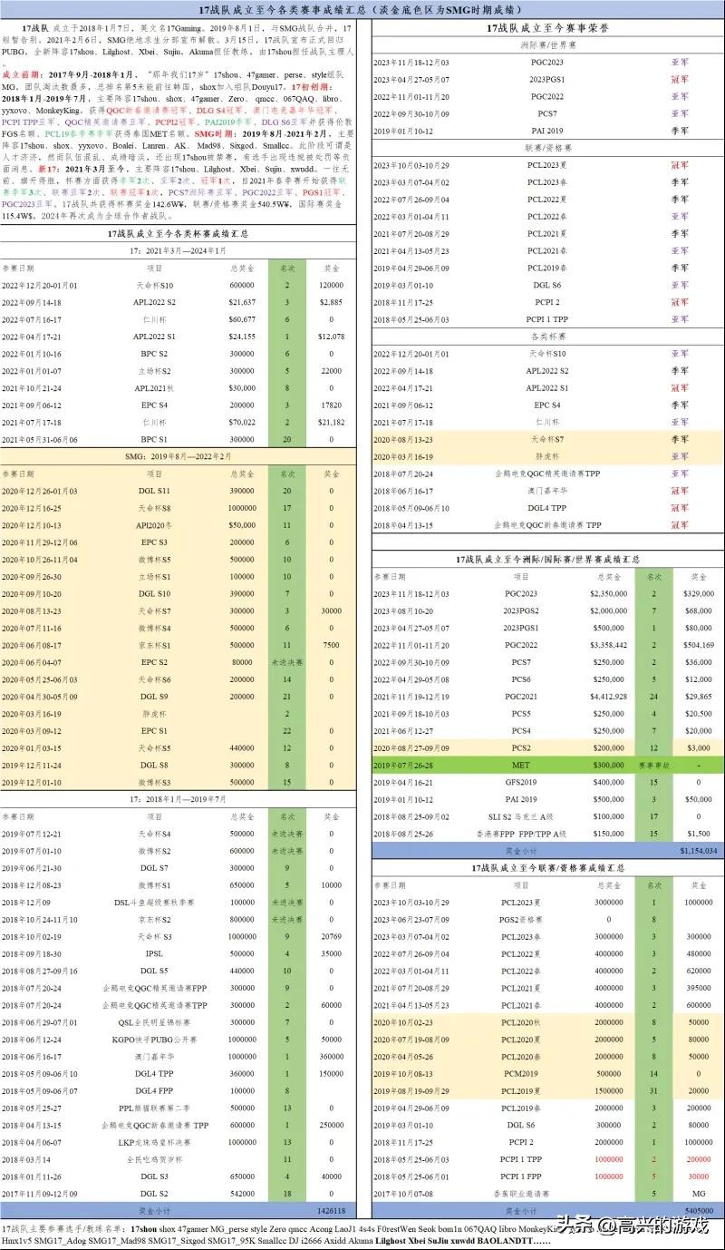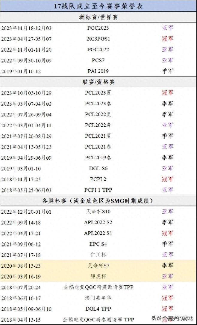 17战队成立至今各赛事成绩汇总表(含SMG时期)