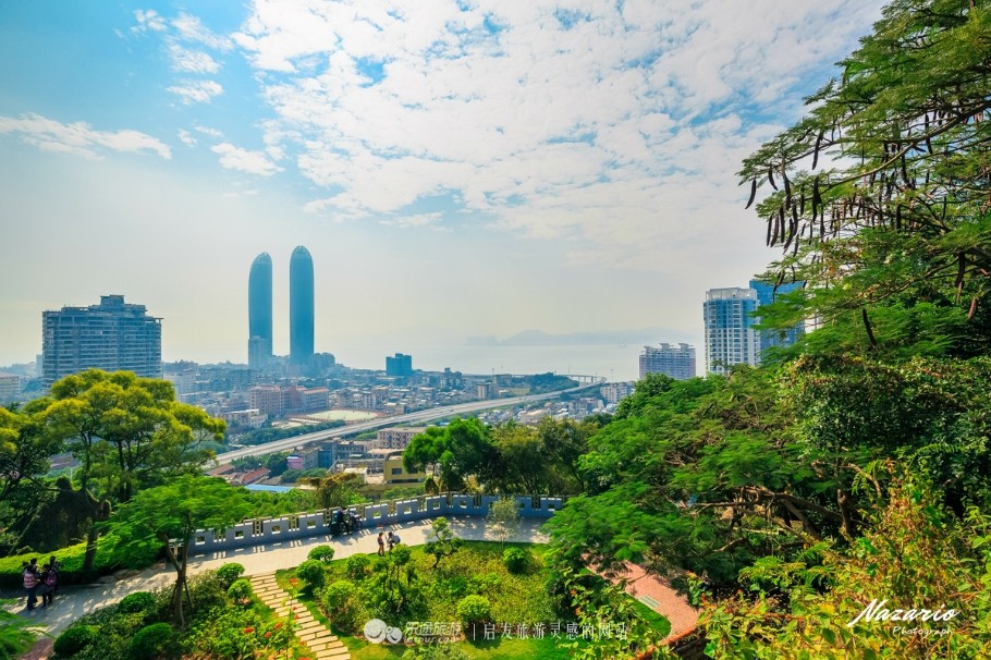 公园中最高峰的观景台,比对岸鼓浪屿日光岩还高,登高远望,可以鸟瞰整个厦门市区和鼓浪屿!这也是我们今天鸿山的最终目的地。