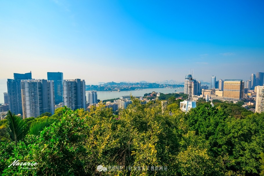 半山腰有一块石头的平台,已经可以穿过高楼远眺到海峡对面的鼓浪屿和双子楼!