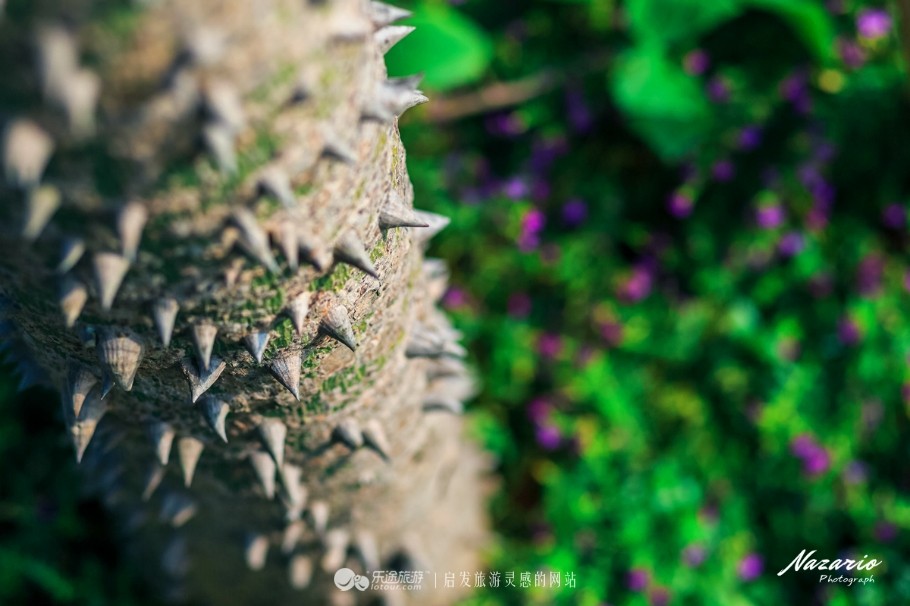 这所公园虽然没有太多值得称道的景点,但整个绿化非常好,带刺的木棉树被星星点点的紫色小花点缀着!