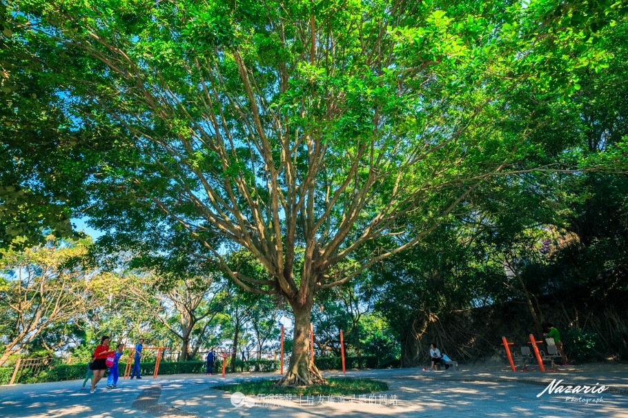山顶的这棵榕树枝繁叶茂,像一把巨大的伞,给树下来此锻炼的市民们提供了惬意的凉爽!